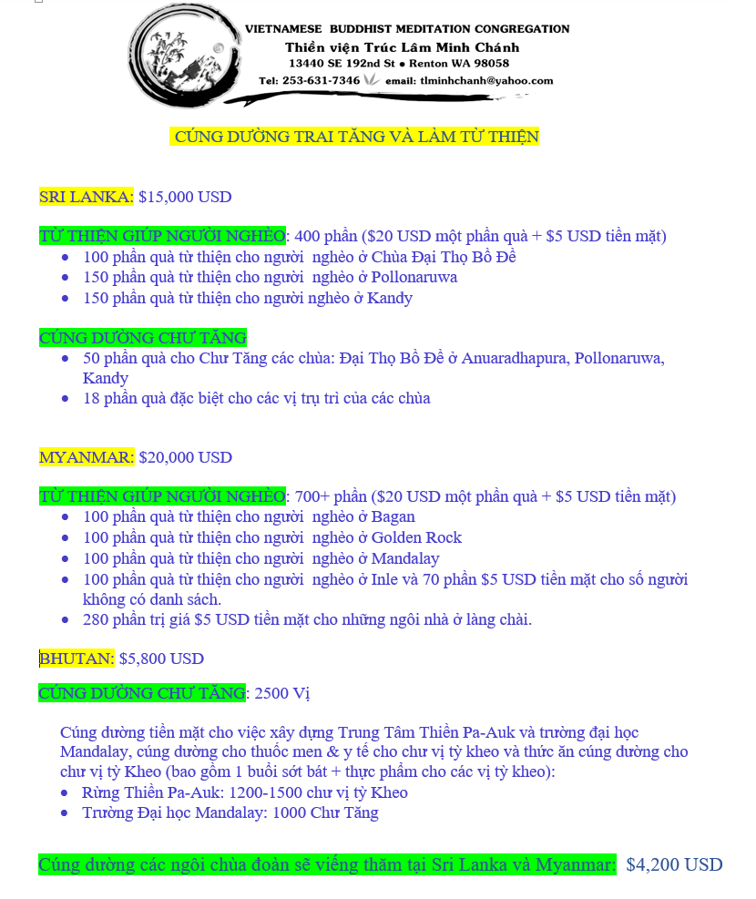 thăm HT Ân Sư Thượng Thanh Hạ Từ và làm một ít phật sự từ thiện do phật tử chung góp. Chuyến đi từ thiện kỳ II, Tết năm 2013 như sau: